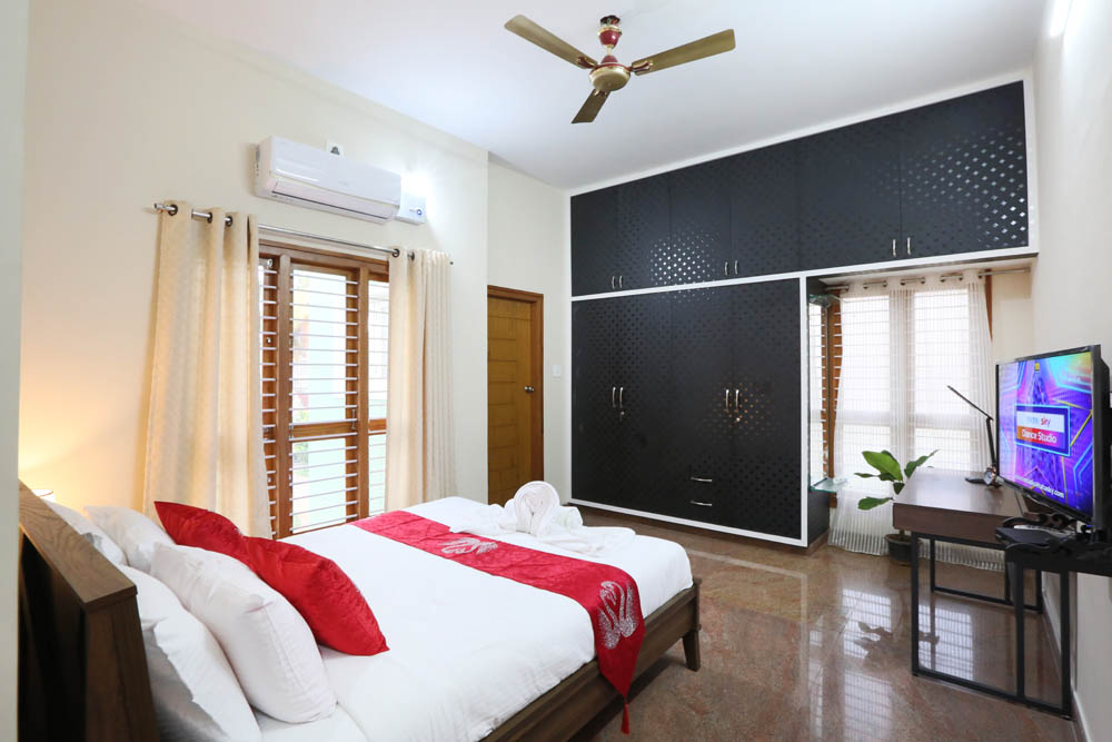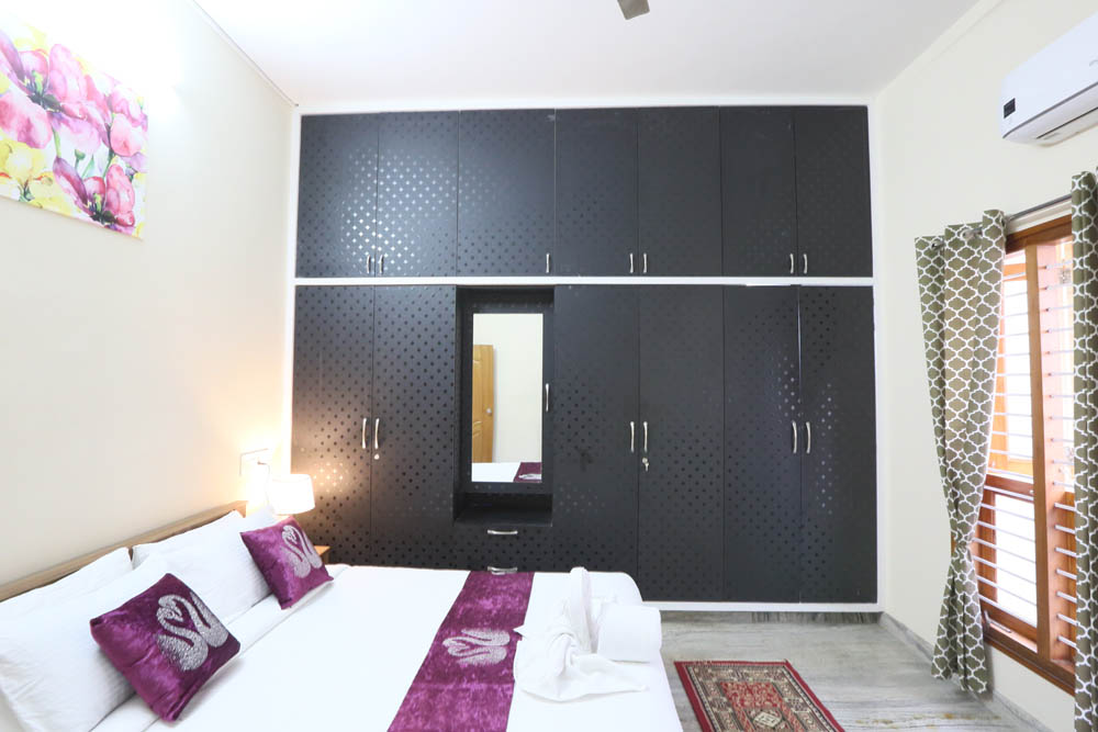 LikeMyApartment service apartment in mysore is a Single Apartment with 3 bedrooms or both Apartments with total of 6 bedrooms can be rented depending up on the individual’s requirement.
